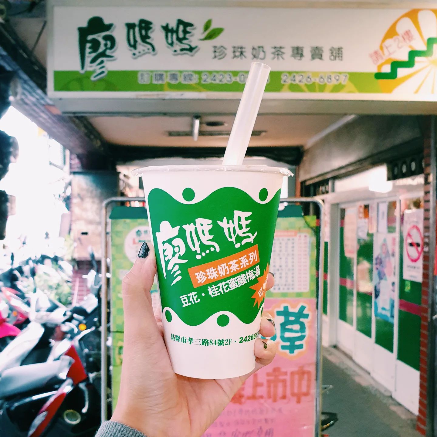 基隆必喝的飲料店「廖媽媽」,走傳統古早的味道,珍珠大顆,軟Q有嚼勁!雖然沒有太華麗的包裝,可是樸實好喝就已讓人難以忘懷。