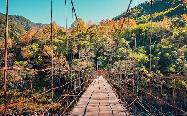 新竹的尖石秀巒部落也有楓葉美景,滿山頭的楓葉青黃相接,是台灣野生楓林密度最高的地方。一旁的軍艦岩吊橋和控溪吊橋都是取景的好位置,漸層暈染的楓紅搭配上遠方的吊橋、野溪溫泉,夢幻的畫面就像是一幅油彩畫。另外,在楓葉林中還有一個好拍的攝影點,有一株相連的五胞胎,由下往上拍就能拍出一張張獨特的視角。