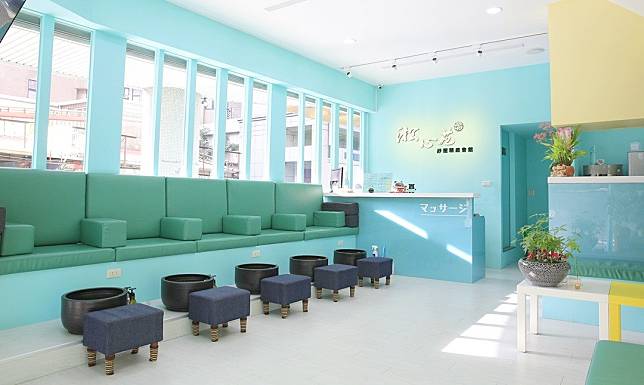 位於饒河街夜市旁,地點便利。店內大膽的利用 Tiffany 藍為基調的設計,加上明亮採光的裝潢,打破傳統按摩產業的裝潢,氛圍相當舒適喔!且每間包廂皆設有獨立淋浴間,隱私隱密度高。