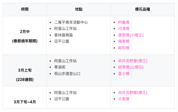 2023阿里山櫻花最佳賞櫻時間