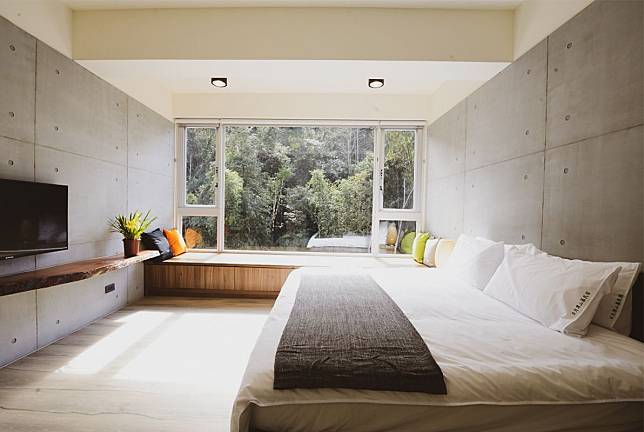 陽光很溫暖,空氣很自在,「家」就是這麼簡單又溫馨。泥灰清水模建築,低調的融入當地,高聳的天井帶來自然光,民宿主人以黑、白、灰木質調,融合周邊山景,沒有多餘的油漆或磁磚裝飾,讓這個「家」有著歲月帶來的韻味。