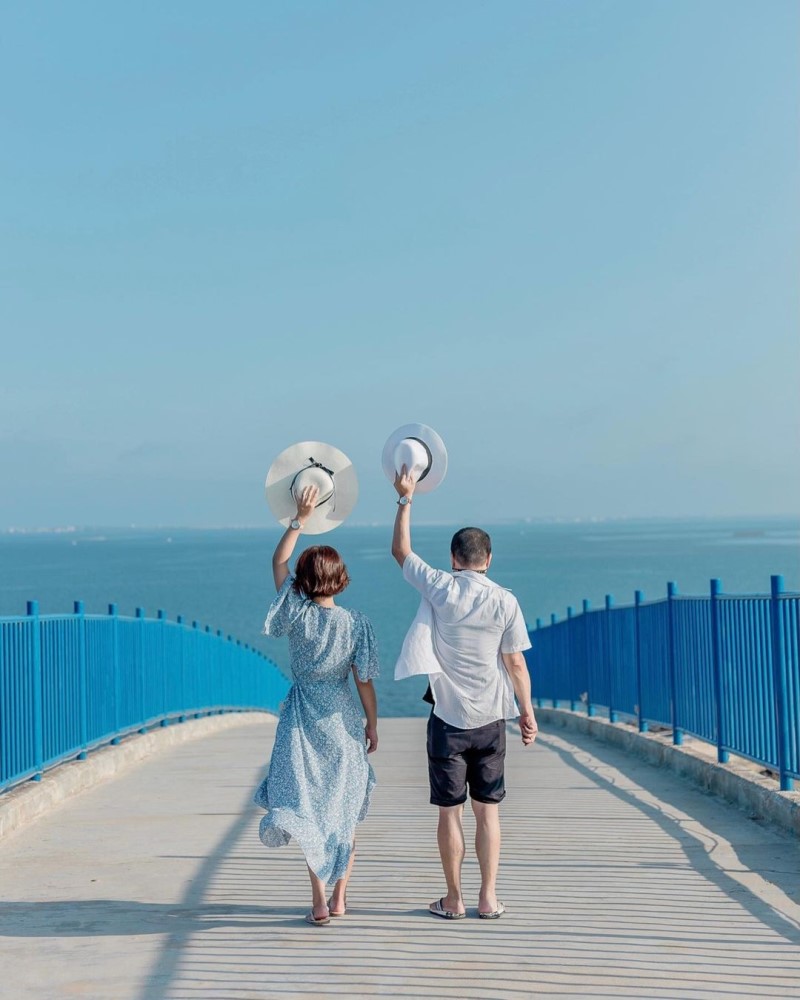 遼闊的海洋與湛藍的天空彷彿融為一體,這條後寮天堂路一路蜿蜒入海,令人有如在海上漫步,且風景會隨著潮汐潮落、自然變化而展現不同的景觀,是澎湖經典不敗的網美景點。不過,由於海堤較為彎曲、狹窄及濕滑,前來拍美照的朋友請謹慎慢行,並多加留意氣候或漲退潮狀態。