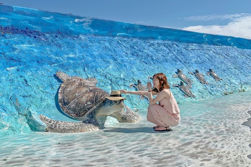 位於竹灣大義宮附近竹灣社區舊活動中心旁的海龜藝術地景,超逼真的3D造景讓你在陸上也能與海龜進行親密互動。不過,若你真的幸運遇到海龜,可別這麼做唷!