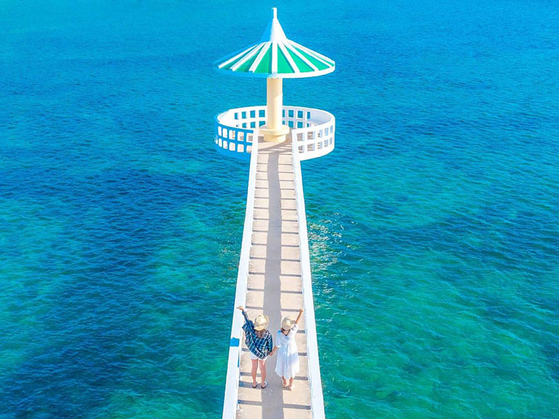 觀音亭不只是今年舉辦花火節的場地,其所擁有的優質地理環境也是許多人進行親水活動的好所在。當你來到觀音亭,除了體驗水上活動,坐落在廟埕前的「西瀛虹橋」,不僅能一覽湛藍的海景,每當太陽西下橋身還會亮起七彩的燈光,是一處浪漫氛圍滿點的景點。
