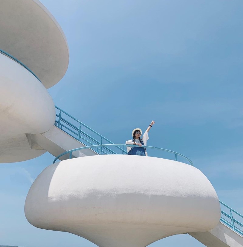 坐落在澎湖一座古老漁村內的風櫃洞,以風櫃濤聲、水柱噴潮、海水抽吸聲等三大奇觀聞名。裡頭設置的「幽浮涼亭」,不只能讓遊客登上高點、靜靜觀海,其純白的圓鼓鼓造型搭配蔚藍的天空,不只觸發你的少女心,每一處還都能輕鬆拍出潔白的夢幻美照。