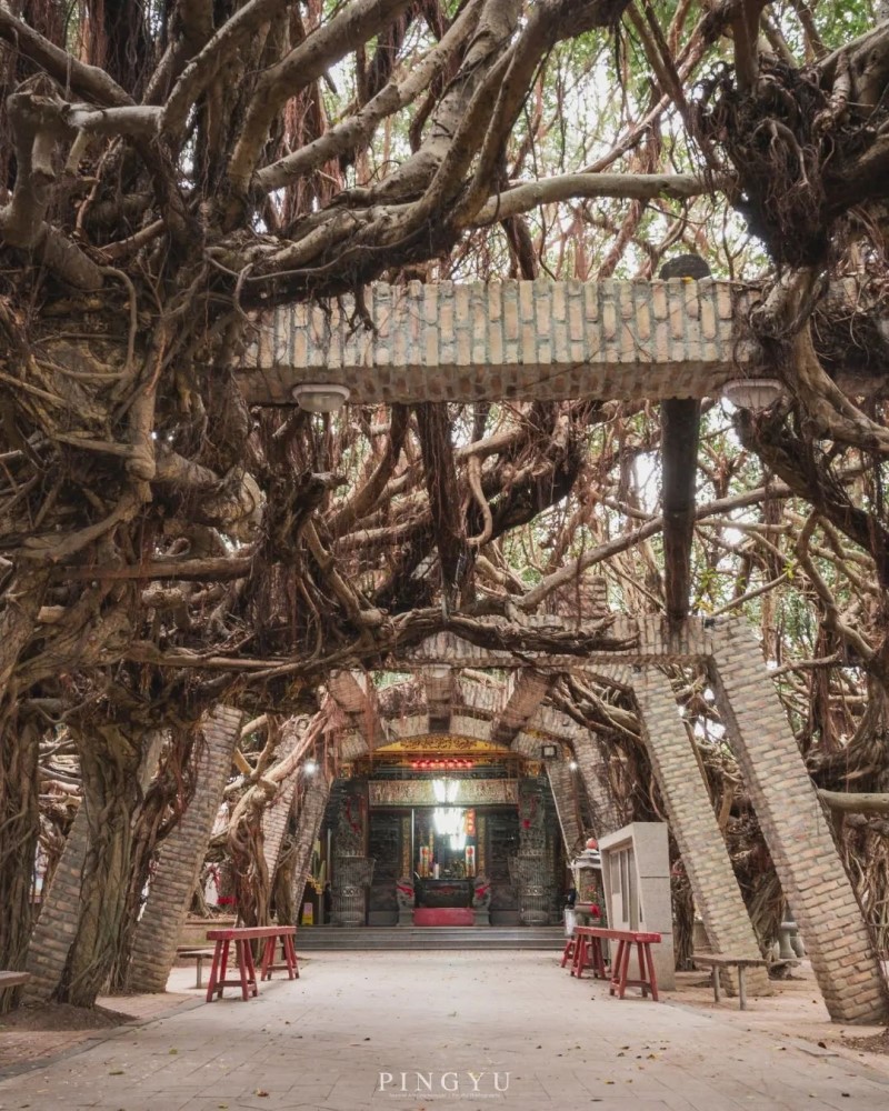 距離澎湖知名景點跨海大橋的不遠處,有這麼一個充滿奇幻氛圍的打卡景點。通樑古榕位於通梁村保安宮前,濃密茂盛的樹林景致是由至今已三百多歲的大榕樹所形成,走進這裡不僅能納涼、避暑,還能留下張張仙氣美照。