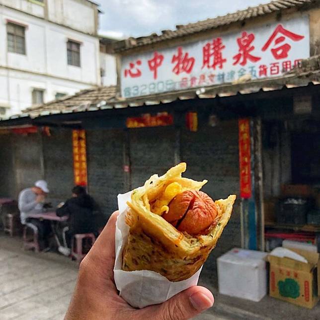 如果你來金門玩之前做過功課,或是說你就是金門本地人,那你一定有聽過蛋香、蛋狗、炒泡麵這些傳說中的美食,炒泡麵望文生義,而蛋香與蛋狗又分別是什麼呢?來合泉購物中心一探究竟吧!這裡看似一間平凡的雜貨店,卻藏有不可思議的美味,用正方形的蔥油餅包裹蛋與香腸、熱狗,就是所謂的蛋香、蛋狗,看似單純的做法中卻藏有不簡單的美味。