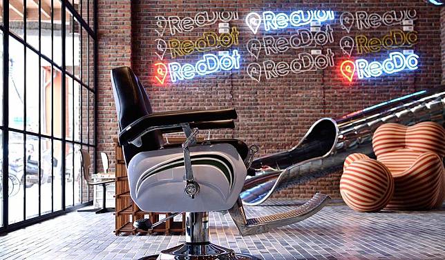 這座被喻為地表上最潮的旅店,外觀由紅磚與黑色交錯,再加上斗大的四色紅色旗幟;而1F有著台中首座室內兩層樓高的溜滑梯,不僅將人文創意詮釋地淋漓盡致外,每一處的設計與擺飾,都帶有過去美好年代的風情,也完整呈現了當今現代都市感性的藝術格調。