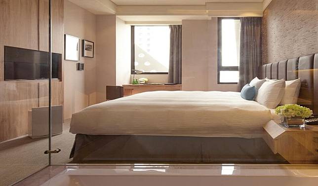 這間充滿低調奢華魅力的「薆悅酒店台中館」,藉由多項復古奢華的硬體設備來打造,大氣卻不落俗套。空間裡匠心獨具的手工典雅柚木家俱、類似鑄鐵建築的大膽色調、質地精細的大理石地板等,在在都散發出一股法國普羅旺斯的渡假情懷。