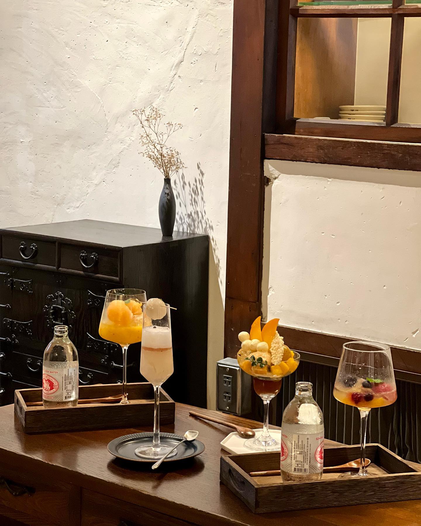漫步在嘉義的巷弄間,隨處一個彎便可見日式老屋,一座兩層樓的百年木造建築靜靜矗立著,揉入了日式侘寂美學空間與日本老件擺設呼應,「堀川茶事」有著京都町家的氛圍,從擺盤、室內設計到選物都極為獨特,精緻的甜點更讓人捨不得一口品嚐。