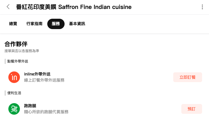 跑跑腿:北部地區立即點擊商家資訊卡下的服務按鈕!