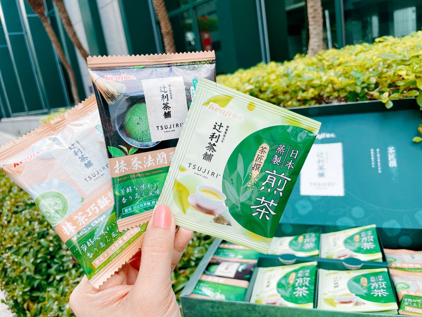「健司X辻利煎茶點心禮盒」煎茶茶包為100%日本進口茶葉,SGS檢驗合格,榮獲農林水產大賞茶鑑定士認可的上等茶葉,所特製而成的煎茶茶包,採用立體茶包使茶葉完全舒展,以60-80度熱水沖泡,展現濃郁茶香及回甘尾韻,搭配煎茶的宇治抹茶風味精緻茶點:採用100%辻利抹茶粉的「抹茶巧酥脆片」及「抹茶法蘭酥」,堪稱絕配。