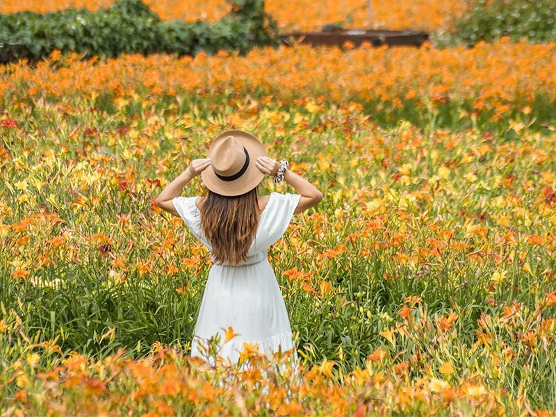 【頭社金針花海】位於南投縣魚池鄉的頭社盆地上,每年的4月底到6月中是金針花的盛開期,有別於其他的金針花海,日月潭擁有得天獨厚的地理環境,種植的金針花品種非常多元,不再是只有金黃色金針花,還有橘紅色、金橘色、紫黃色、粉色等品種,因此又稱做七彩金針花,來訪過的遊客都說頭社的金針花海拍起來更加繽紛、有層次感。