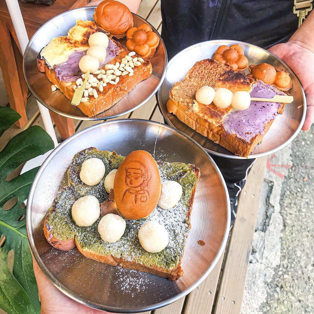 以人氣純手工的自製抹醬,搭配多種下午茶小點製作,包括最基本的厚吐司,甚至還有雞蛋糕跟烤糰子,其中最特別的餐點就是厚吐司的三色山脈口味,將厚實吐司抹上能夠自由選擇的三種果醬,酥脆表面配上濃郁抹醬,香氣與可口度直接加倍,最後再豪邁地將一整串糰子直接放置在吐司上頭,可以沾著果醬享用,或是品嚐澱粉與澱粉的美味罪惡組合,除了好吃外視覺效果也是可愛度滿分!