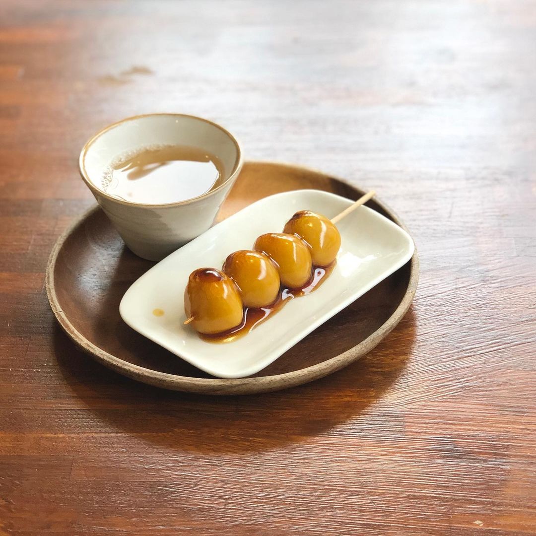 超人氣的桃園日式老宅冰品,位於大馬路旁,保持老屋外貌,但裡面卻是別有洞天的日系復古感,座位寬敞有分室內外,角落擺著多種雜誌跟小物,打造出具有氣質感的選品店氛圍。雖然它們家冰品也是一流,但有一樣較為樸素的商品,口感卻也完全不輸專業店面,那就是烤糰子!經典的甜醬油口味,將醬料毫不手軟的包裹在白嫩的糰子外層,濃郁的口味,搭配柔軟且散發熱氣的糰子本人,每一口都非常迷人且美味,店家還會附上一杯綠茶幫助解膩,一整串吃完也毫不費力!