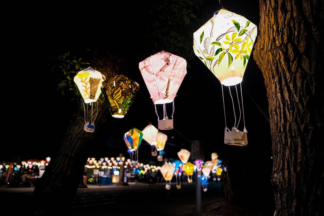 如果在IG搜尋鐵花村,一定會發現大家的鐵花村必拍景點,便是延著鐵花村兩旁街道一串串的彩繪熱氣球。這些彩繪熱氣球是由參加DIY彩繪的民眾所畫,仔細看每顆氣球,偶爾會發現令人會心一笑的內容。而到了晚上,熱氣球點起了燈,一整片漂浮在空中的燈海,夢幻浪漫超有氣氛!