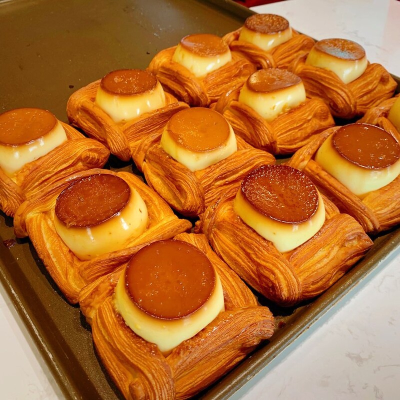 在眾多麵包必吃的絕對是「丹麥烤布丁」,光是外型就攘人食指大動超吸睛,以手工古早味布丁搭配酥脆丹麥麵包香氣十足,忍不住想大快朵頤。