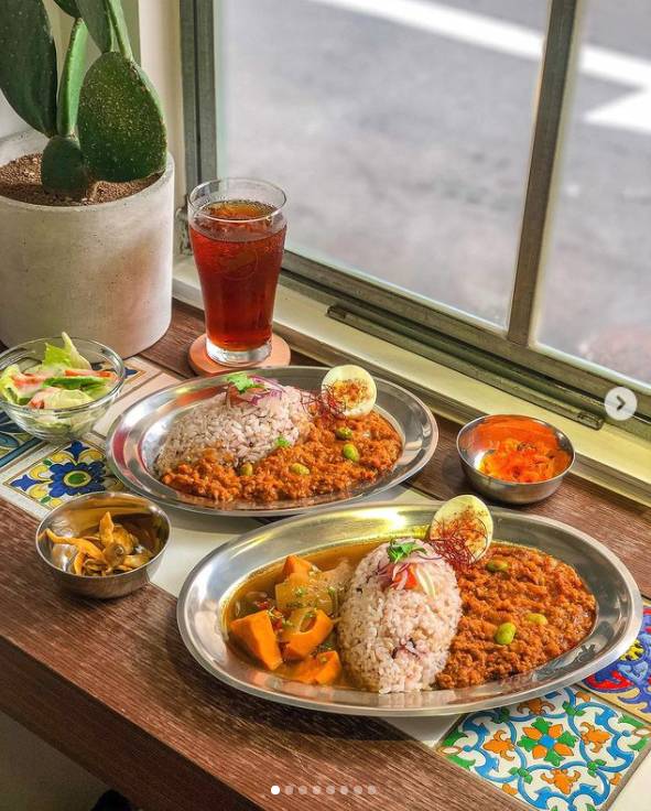 在潮州街的一間來自東京「月見ル君想フ」分店的複合式餐廳,現在在赤峰街也開了二店啦!平日中午11:30-14:30 才有賣咖哩飯,提供的香料咖喱主要有肉醬和酸辣地瓜2種,肉醬有點像乾咖哩,吃起來微微辣很刷嘴,酸辣地瓜則是偏泰式風情,是辣中帶點酸的滋味,兩款都是走清爽的路線,一種不滿足也有雙拼可以享受,除了吃的裡面還有販售服飾、文創作品展售等,更不定時有藝文活動,有興趣的可以追蹤一下官網資訊,找天來逛逛吃咖哩喔