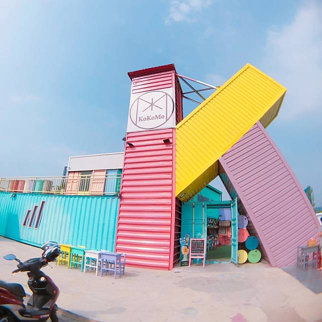 一間用繽紛馬卡龍色貨櫃屋堆疊而成的親子餐廳,近年貨櫃屋裝潢興盛,說到貨櫃屋餐廳好像沒什麼稀奇,但【Kokomo 私房惑櫃】用貨櫃屋堆成一個 K 字整個就是很吸睛啊!還擁有沙池、戲水池、親子遊戲空間等等,讓你吃飽飯之餘還能玩的盡興拍得過癮!