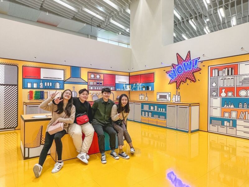 創意日常是視覺衝擊的一區,將普普風的造景設計融入生活細節,運用黑白線條勾勒出立體家具,再加以彩繪,傳達色彩及美感,彷彿進入漫畫世界,不但是個記憶體殺手,也是每個人來到雄獅文具想像力製造所一定要拍照打卡的場景。