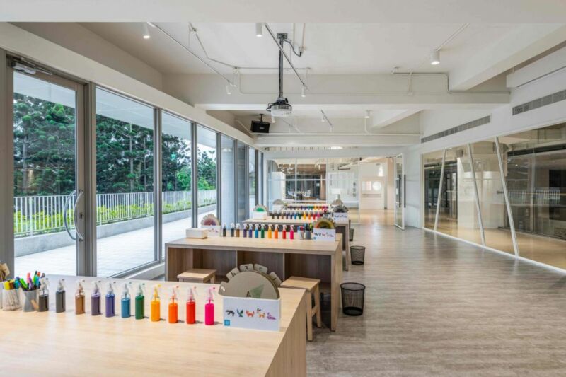 參觀完雄獅文具想像力製造所別忘了到戶外遊憩空間走走,天氣好時陽光從樹林縫隙中撒落在木棧道上,猶如進入夢幻森林中,心曠神怡的綠地很適合野餐、吸收芬多精,靜謐的戶外園區簡直就是隱藏版森林系景點。