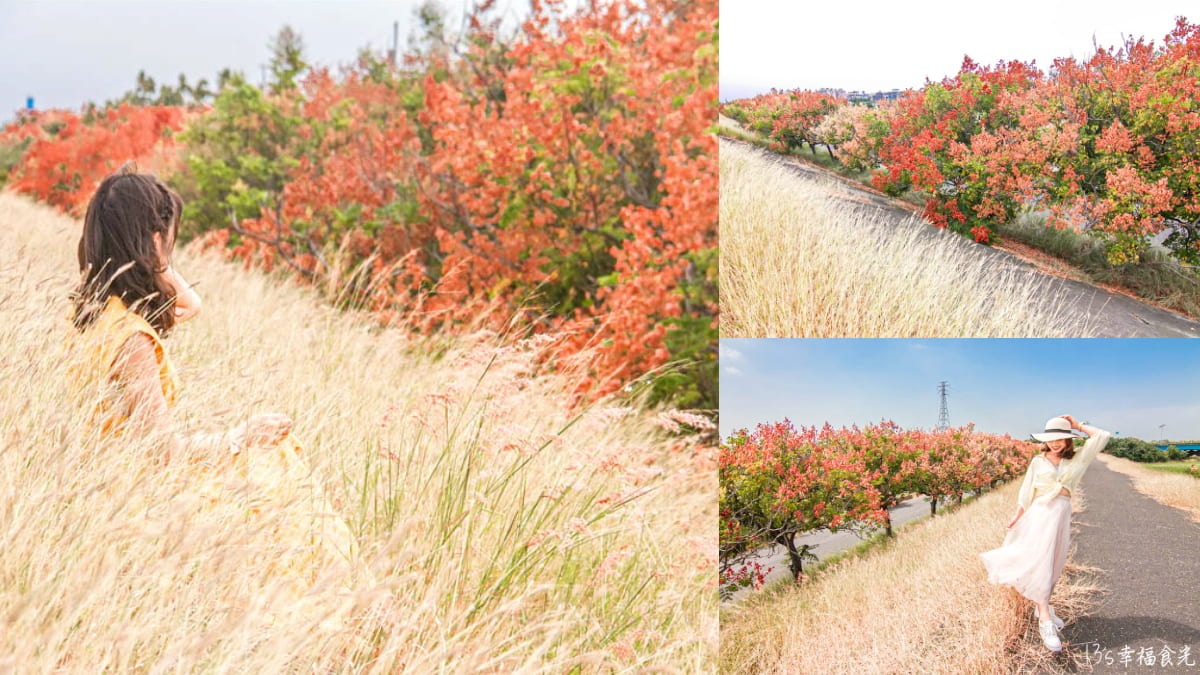 ▲這裡因為豔紅的台灣欒樹+野芒草形成絕美的大地秋色,而在IG上暴紅。(圖片來源:13‘s幸福食光)