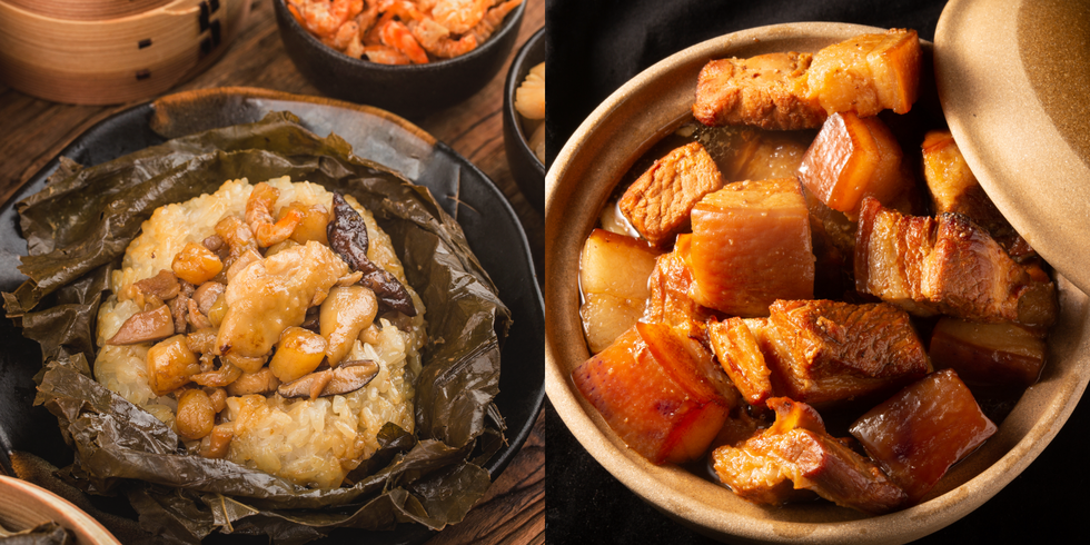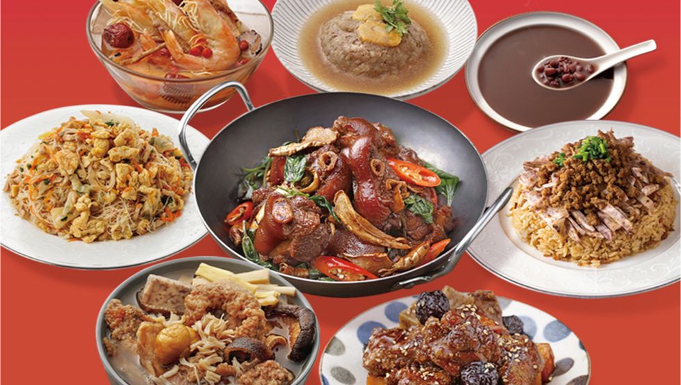 滷肉燥芋頭籤油飯、台式炒米粉、干貝佛跳牆、醉蝦、三杯豬腳、蜜棗排骨、蛋黃肉、萬丹8號極品紅豆湯 NT$2488