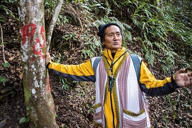 養老部落泰雅族人,住家就位於霞喀羅古道附近,對於古道周邊生態瞭若指掌,熟稔傳統獵人技能,舉凡設陷阱、辨識獸徑等皆難不倒他。