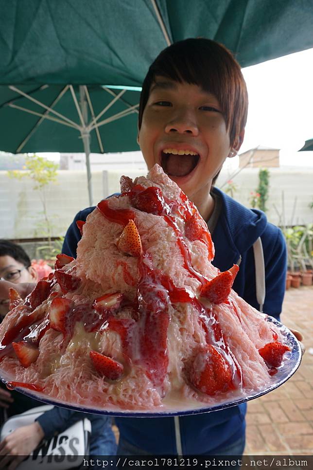 愛草莓的幾位更是爽到翻~~還有一個感冒了說不能吃冰,結果吃了幾口以後一直要XD 吃了很多~