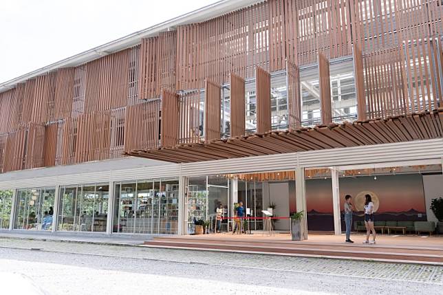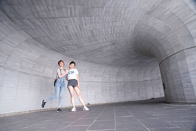第一站就來到了以清水模為建築特色的「向山遊客中心」,女孩們的手機相機早就蓄勢待發。真的要認真介紹這裡,可說的還真不少,向山建築物主要以木紋模清水混凝土為主,並輔以拉預力工法建造。