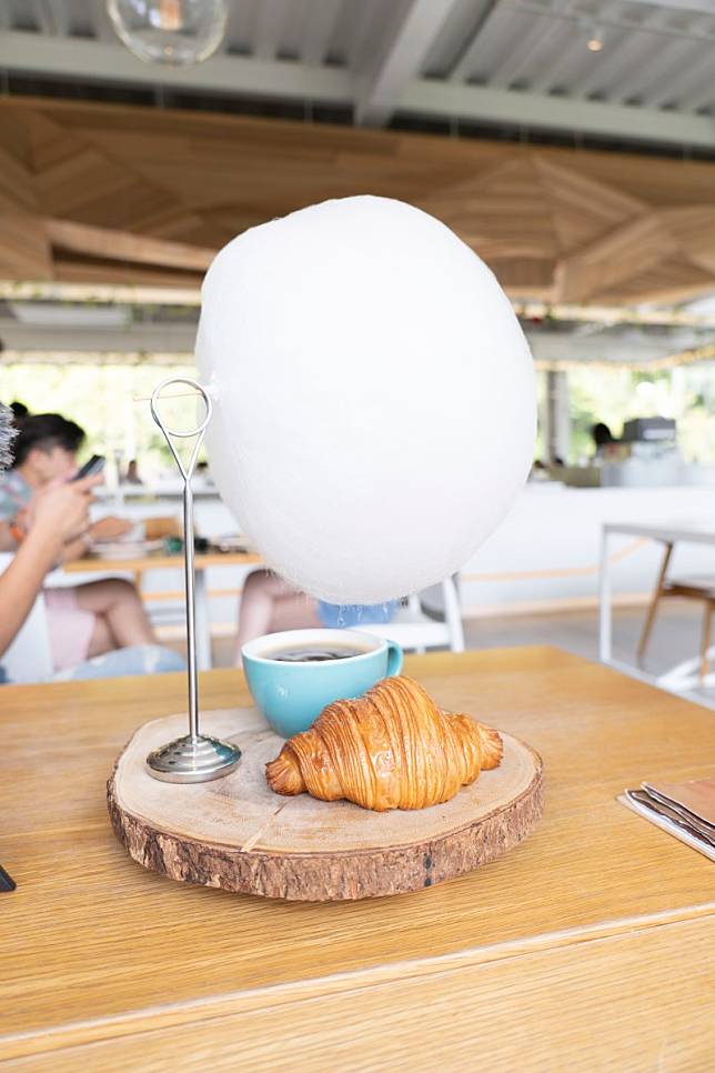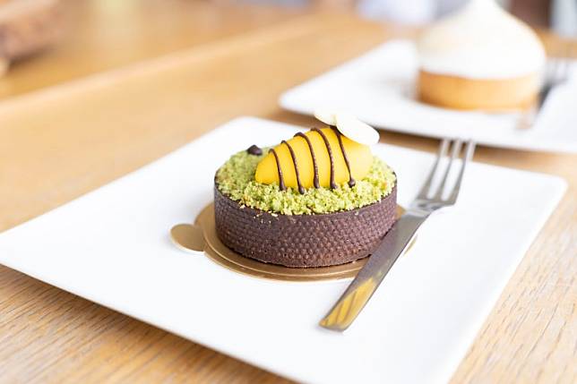 甜點上桌囉!「戀戀日月潭」可說是這裡最具特色的甜點了!由棉花糖代表雲朵、可頌代表山、咖啡代表日月潭本身,這樣的創意真的太厲害了!緊接著上桌的是包含卡士達、糖漬洋梨丁、香草慕斯的「香草天空」;百香果餡、榛果、巧克力蛋糕構成的「小蜜蜂」,與樸實無華卻超受兩個女孩喜愛的檸檬塔。據兩人描述,這裡的檸檬塔根本就是戀愛的滋味,至於是怎樣的滋味呢?就等你自己來體會囉!
