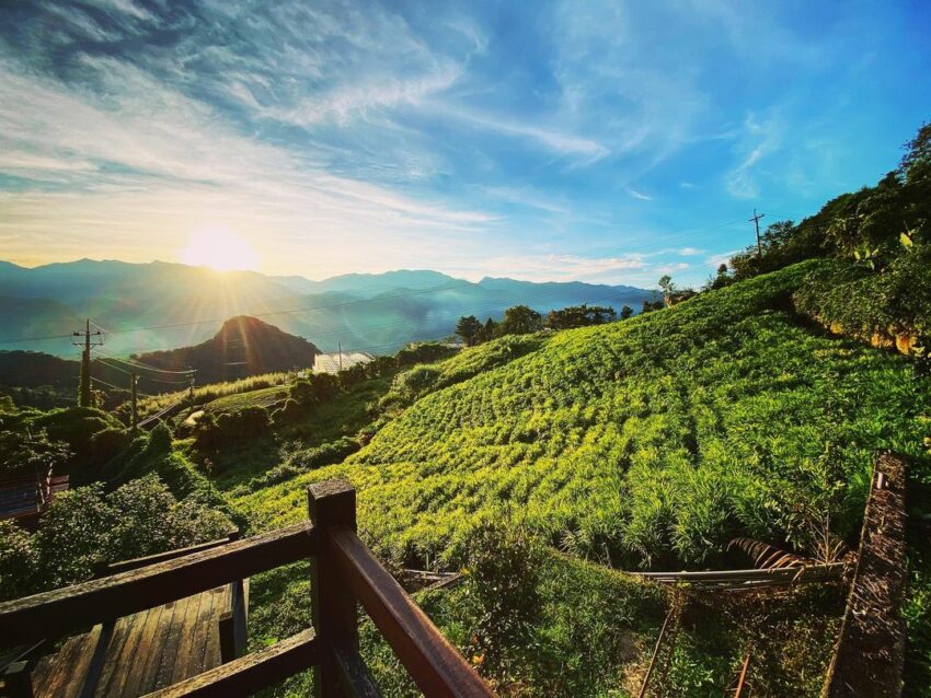 從制高點看下去不只是群山,其中還有井然有序的茶園景象,配上天然的日出,陽光灑在整片綠油油的山坡上,時而雲霧相伴,宛如一幅美麗的油畫。這裡也是知名茶品廣告拍攝地點,擁有360度視野零死角飽覽茶園美景,環境優美空氣佳,是個賞日出與晚霞的最佳地點。