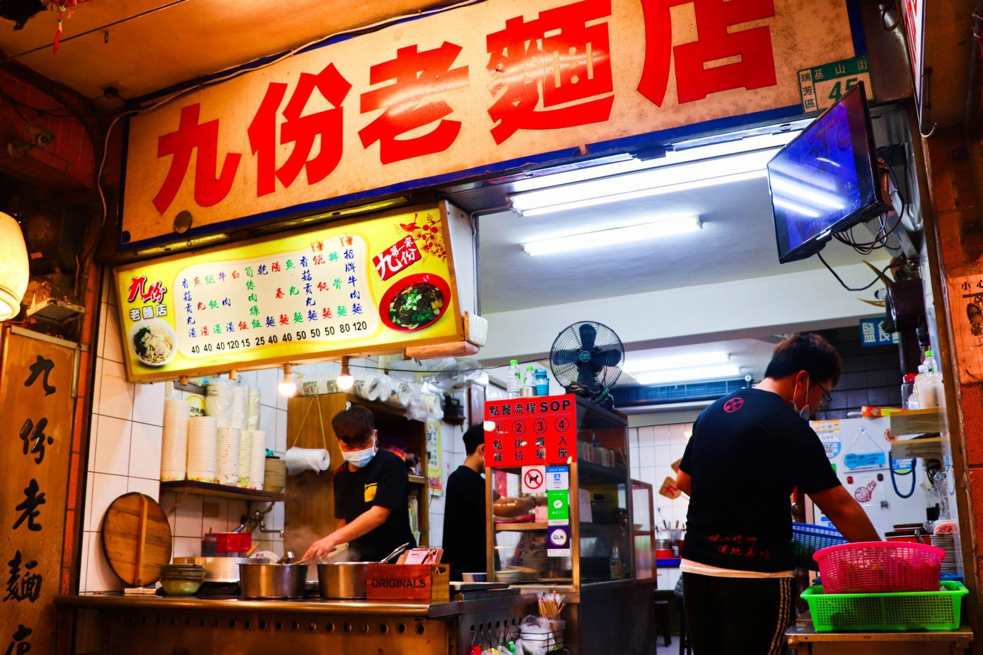 九份老麵店的創始人曾參與過那段最輝煌的淘金年代,原是礦工的他在退休後在街上開起了小麵攤,當時主要提供給其他礦工及居民們溫飽。隨時間的累積,如今已成了一間老麵店,並隨著媒體及遊客相傳漸漸打開了知名度。