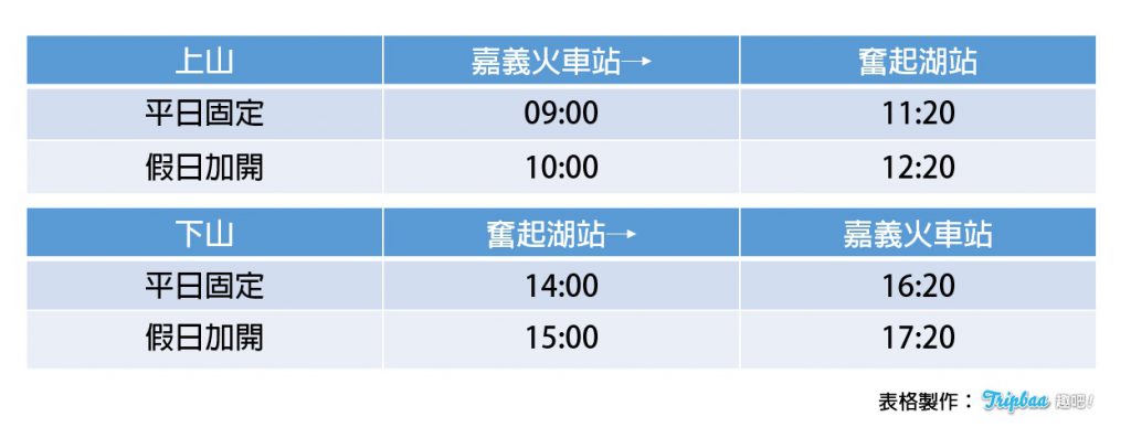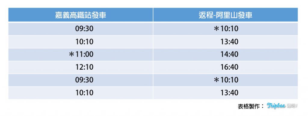 *購票資訊:現場:嘉義縣公車處大雅站、阿里山遊樂區7-11、車上。預售:全家FamiPort。