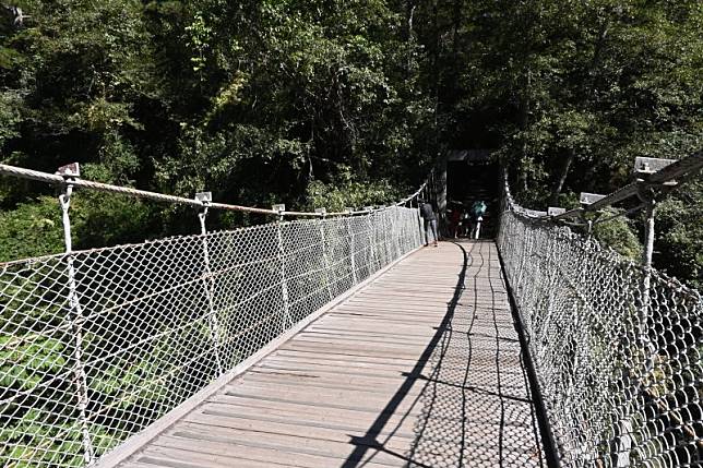 一早起來空氣清新無比,吃過豐盛的早餐之後,就能出發前往桃山步道了。桃山步道一共有兩種,一條是攀登桃山的登山步道,一條是較為平緩、前往桃山瀑布的休閒型步道。大家多半會選擇休閒型的步道逛逛,畢竟即使是這條路來回也是將近四小時,對於平時體力不好的人來說依然具備一定難度。沿途綠樹成蔭、鬱鬱蔥蔥,還能在經過武陵橋時往下欣賞七家灣溪的景致,運氣好的人還能看見國寶魚櫻花鉤吻鮭的身影。沿路呈現之字形平緩上坡,茂密的樹冠讓太陽光微微斑駁在地面,炎炎夏日在此走走相當的涼爽。步道盡頭處是一座涼亭,再往前走約100公尺,桃山瀑布就近在眼前。