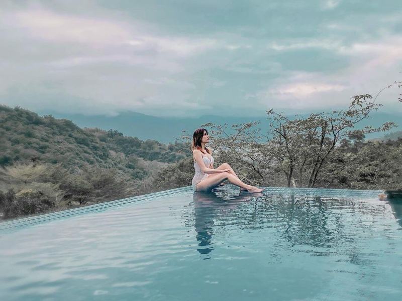 進入大廳,腳下踩著黑色大理石地板,四周是灰色清水模牆壁,裝潢則融入了大量的木頭元素,營造一種樸實沉穩的感覺。山灣水月景觀溫泉會館的山景房設有小陽台,可遠眺海岸山脈的壯闊美景,房內個人湯池引用的是安通溫泉,屬於弱鹼性氯化物硫酸鹽泉,泉質透明中帶點乳白色,有淡淡硫磺味;無邊際大眾溫泉池也是山灣水月景觀溫泉會館的一大亮點,一邊泡湯一邊欣賞青山綠景,愜意的不想離開。