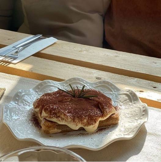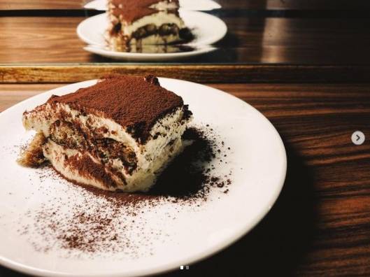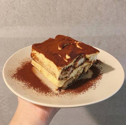 價格十分親民的提拉米蘇,使用傳統製法製作,整體偏濕潤,口感如棉花糖蓬鬆、入口即化,適中的酒香與咖啡香令人陶醉,又互不搶風頭,馬茲卡彭香濃滑順,再撒上大量苦甜可可粉,降低了蛋糕的甜膩感,是道外表樸實卻又令人驚豔的甜點!