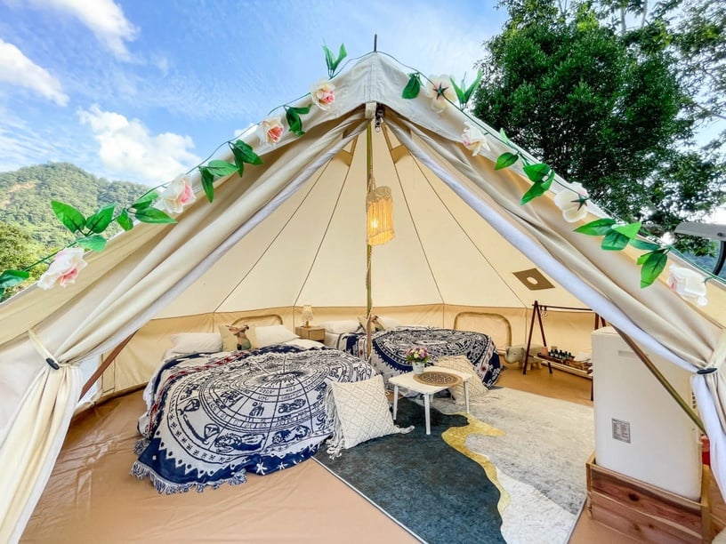 位於台中新社的「天籟之森露營區」,除了能體驗自己動手搭帳篷的樂趣,最近也新增了豪華露營帳篷,讓你不用大包小包就能輕鬆露營與大自然共眠~帳內佈置的超漂亮,床超軟超好睡的,還貼心的提供盥洗備品,真的是完全免裝備!