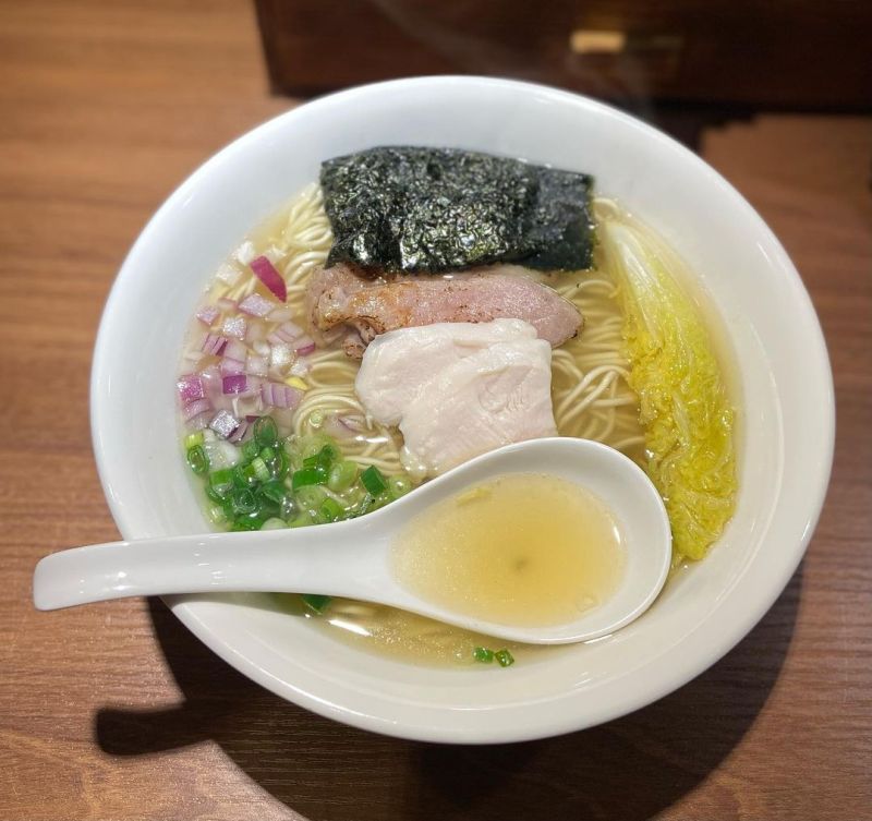 台北市竟然有這麼平價的拉麵!長生塩人就位在北投捷運站附近,清湯湯底卻不落於乏味,配料有兩種肉,分別是炙烤過後微焦的豬叉燒及舒肥雞,搭配上脆口的娃娃菜,麵體上偏硬,能吃得到麵心的口感,整體來說是一碗能把湯喝光光的清爽系拉麵!