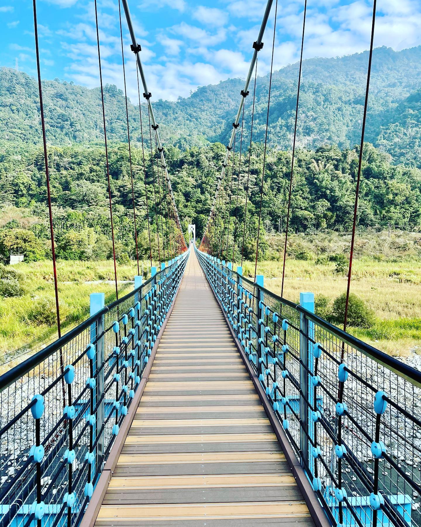 「白鹿吊橋」有著「台中最美的吊橋」之稱,全長250公尺,橫跨著大甲溪,在橋上還能看見以泰雅族代表色(黑色/紅色)所設計的小巧思,吊橋巧妙與在地文化結合,靜靜的守護來往居民的安全。