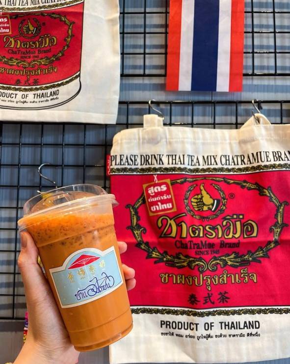 大家知道除了打拋豬以外還有特別的泰式小吃,一顆一顆像是竹籠小球的造型,裡面是豬肉丸外面再用麵線一條一條裹在外面,再用炸的方式外酥內軟,很特別的一道料理。而泰式奶茶也是必點,可以挑整冰塊與甜度,還可以免費加珍珠,老闆真本超佛心啊!