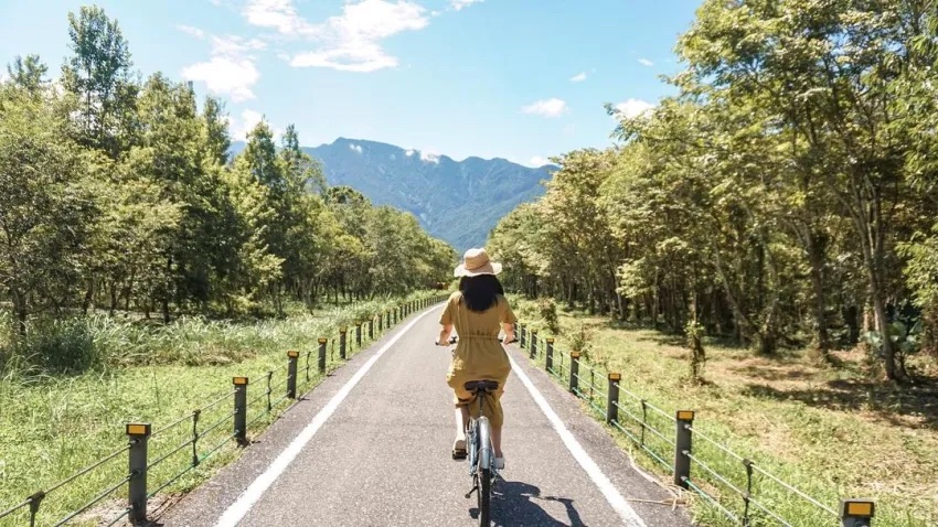 來到大農大富平地森林園區,你能看到一望無際的綠樹成林、藍天白雲下的圖騰花海、創意無限的裝置藝術品。租上一台腳踏車,迎著陽光乘著風,穿梭在美景如畫的園區裡,是最受歡迎的遊憩方式。