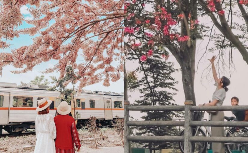 二水鄉的花旗木正在盛開中,位於源泉派出所附近的鐵道旁,種植著一整排的花旗木,每年三四月花季時,粉色的花瓣隨風搖曳,騎著自行車穿過其中,每當輕風吹過便落下陣陣的花瓣雨,畫面真是美不勝收。一旁的鐵道不時會有火車經過,建議事先查好時間前來,便能捕捉到火車經過粉紅花旗木下的浪漫景色。