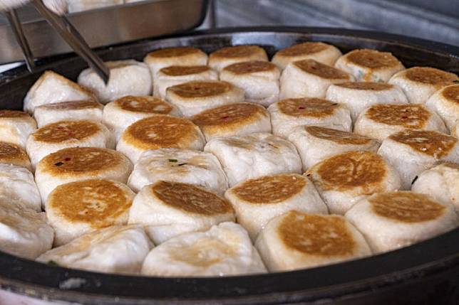 小吃一向是台灣美食的精華,而水煎包,更是其中的佼佼者。點頭大餅水煎包顧名思義賣的就是黑糖大餅、水煎包,它的水煎包內餡有韭菜豆干與粉絲肉末,吃起來和坊間一般的水煎包大不相同,相當具有特色。韭菜的濃厚香氣與粉絲、豆干的多元口感交織成一個寶盒,而這個份量十足的寶盒足夠食量小的人吃上一餐,頗為驚人。