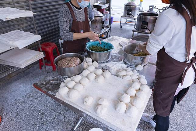 大餅又是另一番風味,黑糖的香氣、柔韌的嚼勁、葡萄乾的甜香,這些都是一般外面賣的大餅所不具備的優點,扎實的口感更擄獲不少熱愛古早味麵點者的歡心,正餐想來點不一樣的?吃「點頭大餅水煎包」就對了!