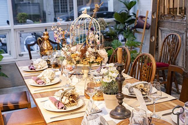 店內裝飾了大量的古董老物與文青擺飾,花卉、植物櫛比鱗次的裝飾其中,整體美感卻毫不違和,充滿了藝術的雅趣。每到用餐時分這裡總是高朋滿座,老朋友相聚、家族聚餐、情侶約會,這裡永遠散發著溫馨的氣氛,柔和的燈光映照下,人人臉上都有笑容。