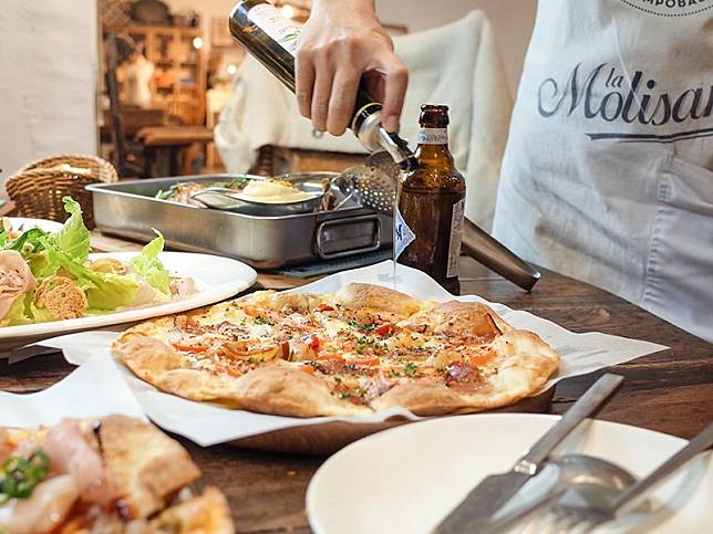 不同於普通店家的披薩,「關於餐桌」服務員會在桌邊服務時,淋上奧利塔披薩專用的佐餐橄欖油來增添披薩的風味,帶有明顯的蕃茄、朝鮮蓟風味的特級橄欖油,讓披薩的風味更加豐富誘人!比較老派的義大利迷當然也該嚐嚐「關於餐桌」的義大利麵,尤其是招牌的「蒜味橄欖油蛤蜊扁細麵」人氣超高,愛吃麵食的人可別錯過!