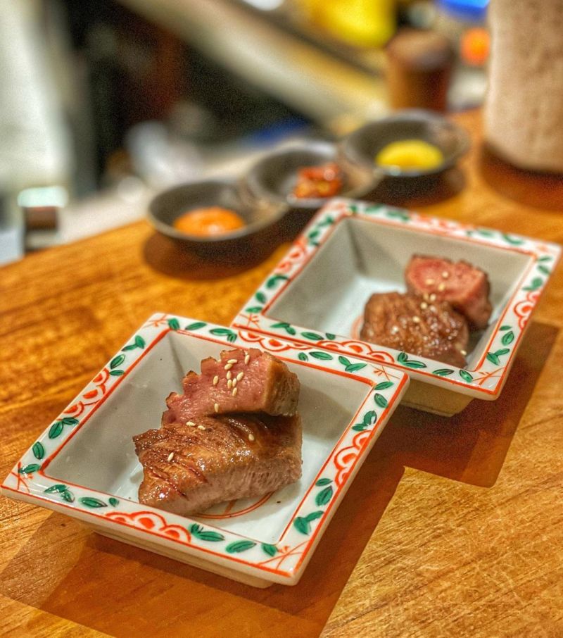 隱身市場中的燒肉小店,訂位預約均透過網路訊息安排。而店裡僅有板前六個座位,所以不建議來這裡聚餐,反而更適合隻身前往,一個人在吧檯享受美食,忘卻那些無意義的社交煩惱。牛肉菜單有澳洲&日本和牛兩種,價格非常親民,而厚切牛舌口感Q彈且富含肉香,搭配上吻仔魚生雞蛋飯非常的過癮。