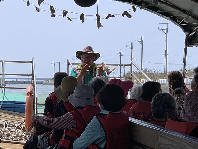 在船上能做什麼呢?其實既然都參加了在地體驗行程,就專心聽聽專業導覽吧!認識一下正航行之上的潟湖,以及養蚵知識,順便認識周邊可能看見的海鳥也不錯。至於在船上能看見的除了潟湖生態,還有蚵棚、定置漁網等。吹著涼涼的風,船程來回約九十分鐘,單趟(在船上的時間)約半個小時出頭,不會太久,心曠神怡悠悠哉哉。
