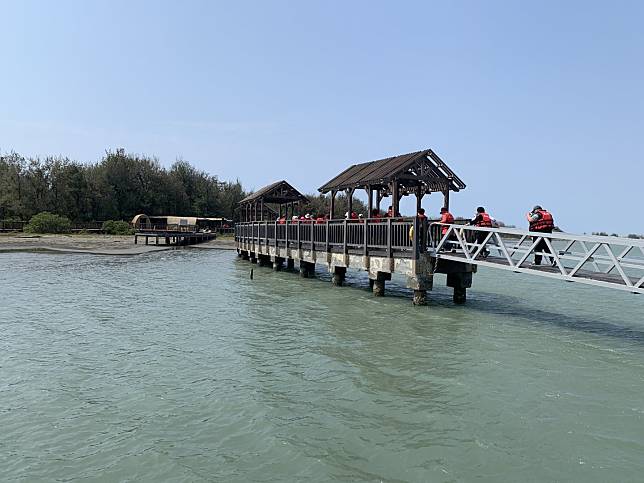 這次小編丹丹參加的在地體驗行程,是在七股鄰近龍山宮的碼頭舉辦。因為丹丹跟朵瑞斯兩位小編人數過少,所以就與當天的遊覽車包車團一起併團出發(散客要15人以上才能成團唷!),每位成人250元就可以一覽潟湖之美,坐竹筏到網仔寮沙洲(台江國家公園),專業導覽講解潟湖、養蚵知識、海鳥等生態。